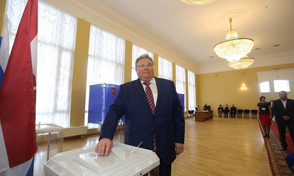 Врио главы Мордовии Владимир Волков проголосова на избирательном участке №557, расположенном в Государственном русском драматическом театре Саранска.