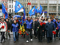 И в этот раз "единороссы", единственные из всех политических сил России, вместе с представителями иностранных посольств возложили цветы к памятнику.