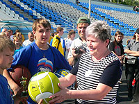 На торжественной церемонии награждения всем победителям и участникам были вручены кубки, мячи и сувениры от партии "Единая Россия" и предприятий города.