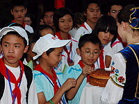 Это была очень яркая и трогательная встреча. Около двухсот ребят из детского лагеря "Ивушка" и молодогвардейцы выстроились в "живой коридор", по которому китайские мальчишки и девчонки проходили к автобусам, прибывшим из детского лагеря "Орленок". Надо заметить, что первые слова, которые услышали дети из Китая в Краснодаре, были как раз на их родном наречии. Кубанские ребята тщательно подготовились к встрече дорогих гостей и специально к этому событию выучили несколько китайских слов. "Здравствуйте! Добро пожаловать! Приятного отдыха! Россия – Китай – дружба!" - слаженно скандировали краснодарцы во время того, как гости из Китая спускались с трапа.