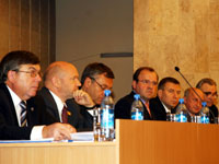 С докладом по первому вопросу повестки дня "О ходе реализации Предвыборной программы МГРО "Московские единороссы – Москве и москвичам" и приоритетных задачах городской партийной организации в 2008-2009 годах" выступил Секретарь политсовета Московской организации партии "Единая Россия", Первый заместитель председателя Комитета Госдумы по образованию Юрий Карабасов.