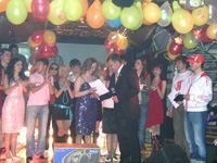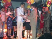 Приз зрительских симпатий определяли участники зрелища, развернувшегося в "Емеле". В прозрачную урну они бросали отрывные талончики от входных билетов с номером полюбившегося исполнителя. В итоге приз получила Александра Пашкова с задорно прозвучавшей песенкой "Стоят девчонки". Вручил его зам. секретаря политсовета Магаданского местного отделения "Единой России", гендиректор фирмы "ОМЭК" Владимир Монастырский.