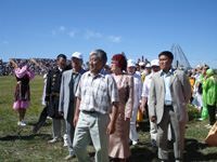 При торжественном открытии общегородского "Ысыаха" представители муниципальных образований, местных и первичных отделений вместе с другими гостями Ысыаха шествовали на почетном параде и рассажены на трибуне почетных гостей.