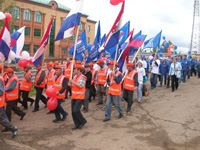 Члены партии "Единая Россия" отличились и в праздничном городском шествии: одна из самых массовых колонн была и самой звучной: звучали не только песни про любимый Кудымкар на Коми – Пермяцком языке, но и речевки и призывы, славящие любимый город. Позднее, на городской площади актив "Молодой Гвардии Единой России" с партийными флагами вместе с общественными организациями города на высоком спортивном уровне изображал различные фигуры, демонстрируя приверженность здоровому образу жизни. За здоровый образ жизни ратовала и руководитель исполкома Кудымкарского городского отделения партии "Единая Россия" Галина Сыстерова, вручившая подарки самой спортивной семье г. Кудымкар - семье Кылосовых.