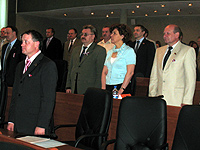 Перед началом работы парламента в нем началась акция "Российский триколор". Трехцветные банты, которые раздавали активисты "Единой России", депутаты с чувством гордости прикрепляли к одежде.
