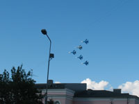 Безусловно, главным событием Дня города, по мнению большинства петрозаводчан и гостей города, стало авиашоу, которое представили пилоты авиационной группы высшего пилотажа ВВС и ПВО Минобороны России "Русские витязи". По словам специалистов, такой подарок городу было нелегко организовать. Однако, инициативу мэра Петрозаводска Виктора Маслякова и Карельского регионального отделения партии "Единая Россия" поддержали полномочный представитель Президента РФ в Северо-Западном федеральном округе Илья Клебанов и Главнокомандующий Военно-воздушными силами Российской Федерации Александр Зелин и единственное в мире реактивное подразделение, выполняющее высший пилотаж на тяжёлых истребителях четвёртого поколения Су-27 прибыло в столицу Карелии. 25 минут завораживающего зрелища приковало взгляды практически всех жителей города, которые собрались не только на набережной по всей ее протяженности, но и в каждом районе города и даже за его пределами. В режиме реального времени командир авиационной группы высшего пилотажа "Русские витязи", заслуженный военный летчик России Игорь Ткаченко поздравил петрозаводчан с Днем рождения любимого города.