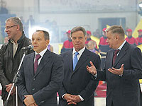Символический "Кубок новых спортивных сооружений Московской области" Губернатор передал главе городского округа Домодедово Леониду Ковалевскому, в знак того, что следующий дворец спорта будет открыт именно в этом городе.