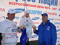 По итогам каждого пробега состоялись торжественные награждения. Победителям с 1 по 6 места Александр Коновалов и Дмитрий Хритоненков вручили памятные дипломы, ценные подарки, вымпела, медали, кубки от Росспорта, комитета по молодежной политике и спорта Псковской области. Не обошли вниманием самого юного участника, самого активного и самого опытного. Им, как и самой многочисленной спортивной семье, были вручены дипломы и подарки.