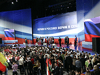 Мы за великую Россию, за свободную Россию, за независимую Россию! За единую Россию, потому что только общей семьей мы с вами решим все проблемы! Давайте подтвердим голосованием свое стремление сделать нашу жизнь лучше!
