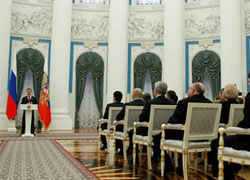 Сегодня в Кремле состоялась встреча Президента РФ с руководителями инициативных групп по созданию политических партий. В торжественной обстановке, в присутствии более 40 участников встречи глава государства подписал Закон «О политических партиях», направленный на либерализацию требований к созданию и деятельности политических партий. Российскую экологическую партию «Зелёные» представлял её Председатель Анатолий Панфилов.