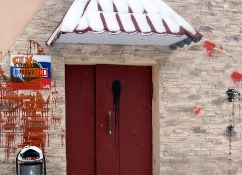 Во Владимире дверь офиса партии, и табличку «Союз Правых Сил» облили красной и чёрной краской.
