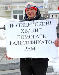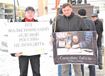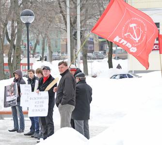 К 12.00 пикетчики вышли к памятнику с плакатами: «Полицейский! Хватит помогать фальсификаторам!», «КПРФ за честные выборы!», «Против партии жуликов и воров!», «1 апреля – день смеха над победителями из «Единой России», «Без фальсификаций «Единой России» не победить!».