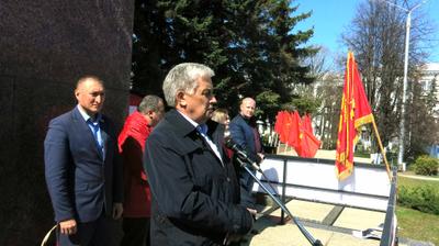 Сначала депутаты от КПРФ возложили цветы к памятнику В.И. Ленину. Прозвучал Гимн Советского Союза в исполнении оркестра. Затем слово было предоставлено первому секретарю Чувашского рескома КПРФ, члену Президиума ЦК КПРФ, депутату Государственной Думы РФ В.С. Шурчанову.