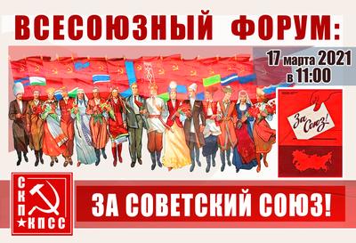 17 марта 2021 года в 11:00 состоится онлайн-форум Союза Коммунистических Партий – КПСС «За Советский Союз!», приуроченный к 30-летию Всесоюзного референдума о сохранении СССР.