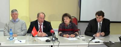 30 января в офисе Саратовского обкома КПРФ состоялась пресс-конференция лидеров регионального отделения: депутата Госдумы РФ, первого секретаря обкома О.Н. Алимовой, депутата облдумы, секретаря обкома С.Н. Афанасьева и первого секретаря горкома А.Ю. Анидалова. Почетным гостем и практически главным участником брифинга стал депутат Госдумы РФ, заместитель Председателя ЦК КПРФ, первый секретарь Московского горкома КПРФ В.Ф. Рашкин.