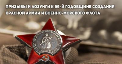 Призывы и лозунги к 99-й годовщине создания Красной Армии и Военно-Морского Флота