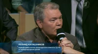 28 февраля с.г. депутат-коммунист, первый заместитель председателя Комитета ГД по международным делам Л.И.Калашников принял участие в программе первого канала ТВ "Время покажет".