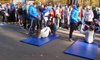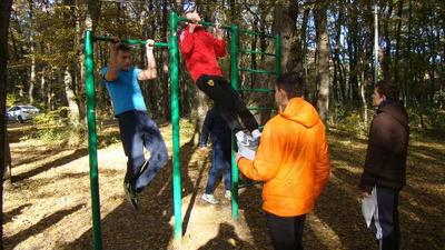 Ребята показывают хорошую физическую подготовку. С дистанции никто не сходит. Прыжки в длину с места, бег на короткую дистанцию, отжимание от пола и самое трудное – подтягивание на перекладине – все эти упражнения школьники выполняют с лёгкостью. Видно, что уроки физкультуры не прошли для них даром. Разумеется, критерии для оценки физической подготовки соответствуют разным возрастным категориям. Пробуют свои силы и те, кому от 25 до 30 лет. Спрашиваю у одного такого участника: