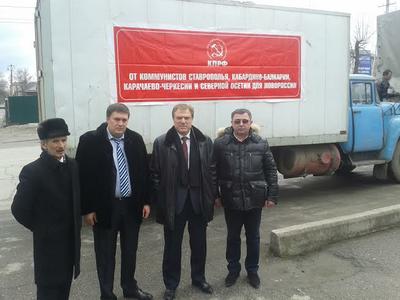 Двадцатитонную машину в Кабардино-Балкарию сопровождали секретарь Северо-Осетинского рескома КПРФ, первый секретарь Промышленного РК Артур Хестанов, секретарь Северо-Осетинского рескома КПРФ, первый секретарь Советского РК КПРФ Диана Мукагова, член бюро рескома, второй секретарь Советского РК КПРФ Замурз Караев.