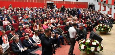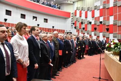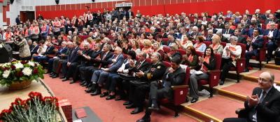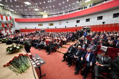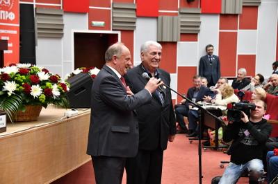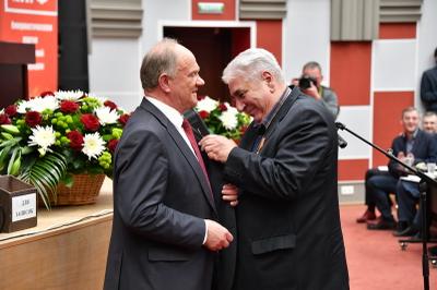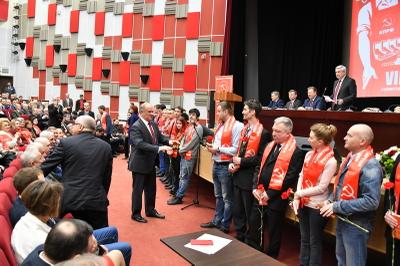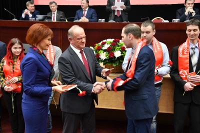 Затем состоялось торжественное вручение партийных билетов. Молодое пополнение КПРФ поздравил Г.А. Зюганов. Он отметил, что за последний год и два месяца в партию вступило около 20 тысяч человек.
