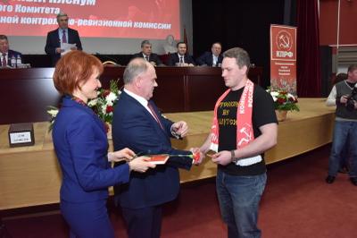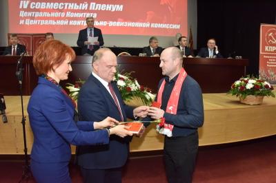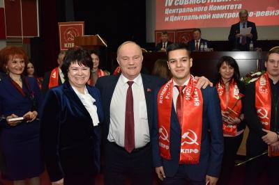 Затем Г.А. Зюганов от имени партийного форума поприветствовал комсомольских лидеров, которые принимают участие в работе совместного пленума ЦК и ЦКРК КПРФ. Накануне они провели Пленум ЦК ЛКСМ РФ. В этом году российские комсомольцы выступили с инициативой проведения юбилейного призыва в КПРФ, посвященного 100-летию ВЛКСМ.