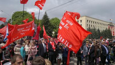Во время праздничного парада и демонстрации коммунисты были позитивно и радостно встречены жителями города. Проходящие мимо фотографировались с участниками акции, знаменами и большим портретом организатора великих побед Красной Армии - Генералиссимуса Иосифа Виссарионовича Сталина.