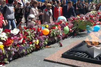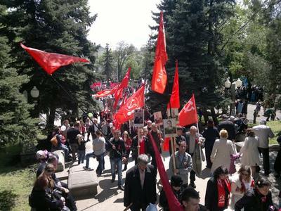 В День 70-летия Великой Победы советского народа над немецко-фашистскими захватчиками коммунисты Ставрополя прошли колонной по площади им. В.И. Ленинакраевой столицы и по центральным улицам города, возложив цветы у Вечного огня.