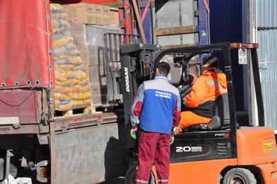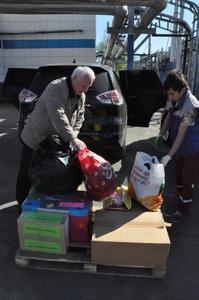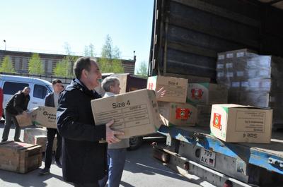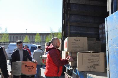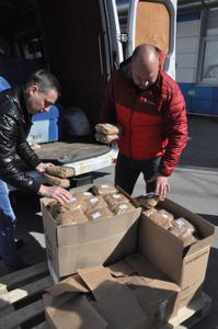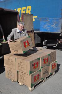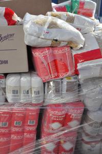 С утра уже здесь кипела работа по загрузке трёх многотонных фур. В грузе, в большом количестве, собраны крупы и макаронные изделия, мука, сахар, тушенка, бакалея, овощи, масло, молоко, одежда, книги, канцелярские и хозтовары, медикаменты. По пути к конвою присоединятся автомобили с грузами из Воронежа, Липецка, Курска, Северной Осетии, Кабардино-Балкарии, Карачаево-Черкессии и Ставрополя.