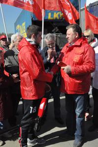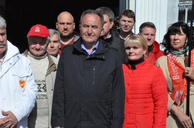 Перед отправкой груза на Донбасс выступили заместитель Председателя ЦК КПРФ Владимир Кашин, первый секретарь МК КПРФ Николай Васильев, первый секретарь Серпуховского РК КПРФ Михаил Волков, советник Председателя ЦК КПРФ Владимир Родин, второй секретарь Тульского обкома Алексей Лебедев, Первый секретарь Компартии ЛНР Игорь Гуменюк, директор Совхоза им. Ленина Павел Грудинин.