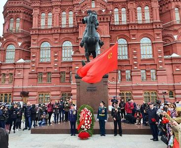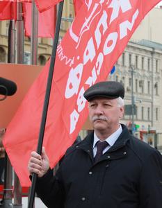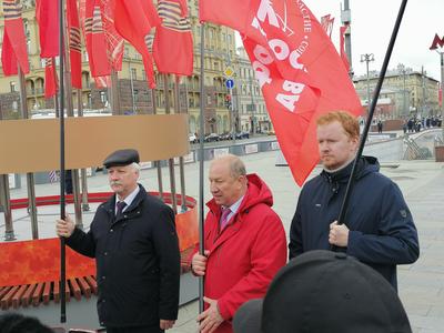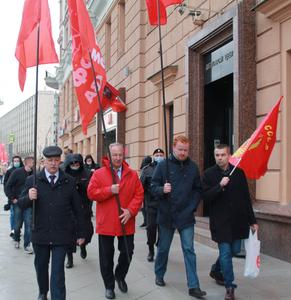 Депутаты Госдумы В.Ф.Рашкин, Д.А.Парфенов и руководитель фракции КПРФ в Мосгордуме Н.Г.Зубрилин прошли от Пушкинской пл. по центру Москвы неся Знамя Победы, флаги СССР и КПРФ.