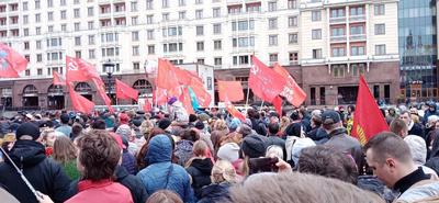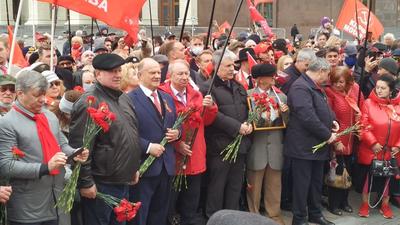 Около Госдумы к депутатам присоединились граждане, москвичи, партийные товарищи и комсомол. Вместе все прошли к пл. Революции к монументу Карла Маркса.