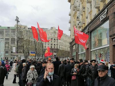 9 мая коммунисты прошли по центру Москвы под красными знаменами