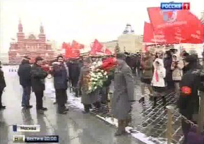 Телеканал "Россия 1" в программе "Вести" показал сюжет об акции КПРФ посвященной 92-й годовщине со дня смерти Вождя мирового пролетариата.