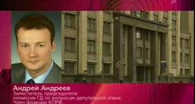 "Новости" Первого канала показали в репортаже об очередном скандале вокруг Жириновского мнение заместителя Председателя парламентской комиссии по вопросам депутатской этики А.А.Андреева (фракция КПРФ).