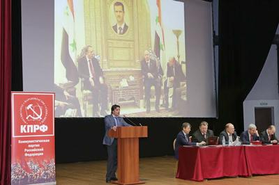 Башар Асад передал горячий привет КПРФ и сказал, что истории наших взаимоотношений почти 60 лет и в ней были разные периоды. Но в целом у наших партий имеются дружественные и добрососедские отношения. Далее он подчеркнул, что для американского империализма не имеет значения, какого размера страна, они не терпят независимости, не важно, Сирия это или Россия. Многие на Западе пишут, что президент России - это царь или диктатор. Но если бы он сдал позиции Сирии и затем России, его бы назвали президентом, исповедывающим демократические принципы.