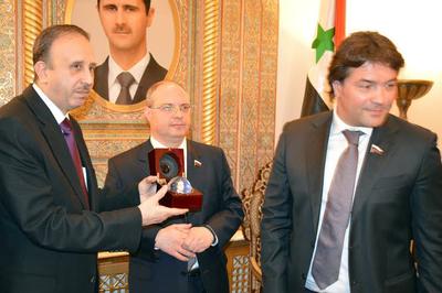 После дружеской беседы, которая продолжалась почти два часа, я выполнил поручение руководства партии, передал привет от нашего лидера и вручил, считаю очень символичный подарок: медаль «70 лет Сталинградской битвы» (ведь Сирия сегодня является Сталинградом Ближнего Востока), и часы с изображением Маршала Жукова – Маршала Победы, что особо было отмечено Башаром Асадом.