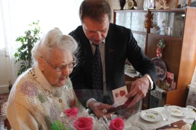 Закончился рабочий день Александра Тарнаева визитом к ветерану ВОВ , Костомаровой Анне Михайловне, он наградил ее медалью ЦК КПРФ « 70 лет Победы в Великой Отечественной Войне» пожелал крепкого здоровья ей и ее близким.