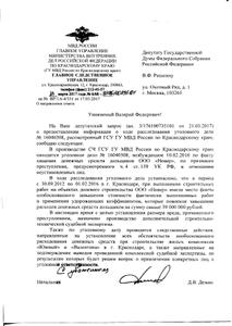 Начальник главного управления МВД России по Краснодарскому краю Д.В. Демин проинформировал В.Ф. Рашкина о ходе расследования уголовного дела, возбужденного по факту хищения денежных средств, внесенных участниками долевого строительства на возведение ЖК «Южный», застройщиком которого является ООО «Новер».