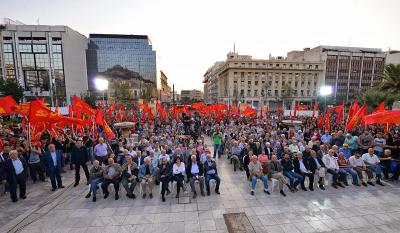 С приветствием к собравшимся обратился Председатель ПЕАЕА-ДСЕ Х. Цинтзилонис, основным выступающим был Генсек ЦК КПГ Димитрис Куцумбас. Он сказал: