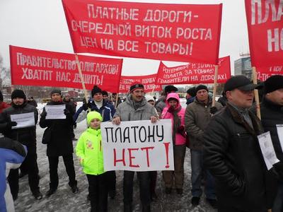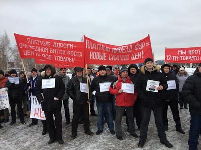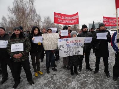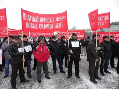 Протест дальнобойщиков против вступивших в силу 15 ноября изменений в КОАП, по которым владельцы грузовиков грузоподъемностью выше 12 тонн должны будут платить по 3.5 рубля за каждый пройденный километр федеральной трассы, продолжается. В воскресение, 6 декабря 2015 года, водители большегрузных автомобилей вышли на митинг в центре Перми у монумента «Героям фронта и тыла». Организатором митинга выступил Пермский крайком КПРФ.