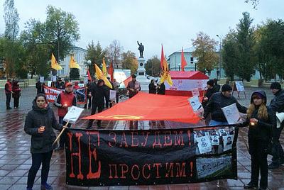 В 19 часов начался митинг с выступления В.Г. Новикова, первого секретаря ОК КПРФ. Собравшимся на митинг рассказал участник тех событий депутат Законодательного Собрания области В.И. Фролов В.И. В митинге и шествии приняли участие представители регионального отделения партии «Справедливая Россия».