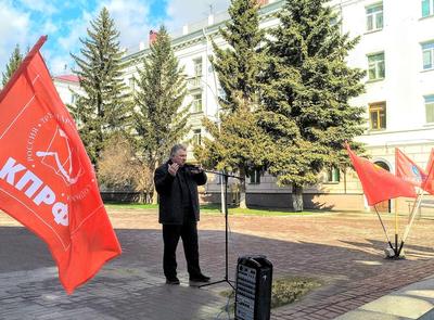 Митинг открыл первый секретарь Курганского обкома КПРФ Виктор Зырянов ярким и мощным выступлением.