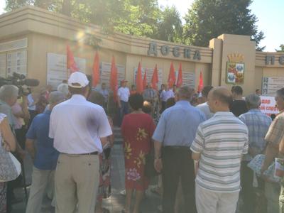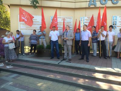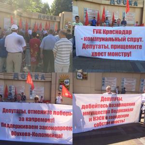 В день Всероссийской акции протеста 29 августа коммунисты Краснодара провели три массовых мероприятия: пикет на Красной, встречу с депутатами Госдумы у мэрии и передачу трех огромных обращений избирателей, а также митинг-концерт в поддержку КПРФ в Юбилейном.