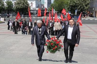 12 мая коммунисты г. Симферополя возложили к памятнику Владимира Ильича Ленина цветы в честь 25-й годовщины создания Союза Коммунистов Крыма.