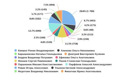 № | Кандидат | Регион | Всего упоминаний | Уникальных авторов | Увле-ченность* | Вовле-чение** |