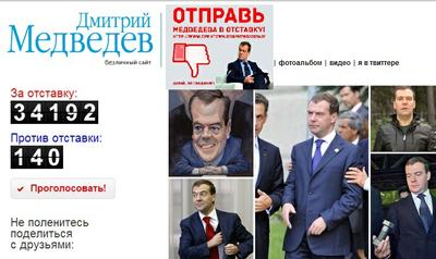 На момент написания этой статьи за отставку Медведева проголосовало более 30 тысяч граждан, если каждый расскажет всего 30 друзьям и знакомым нас будет около миллиона, если и они сделают тоже самое – то поднимется вся Россия, показав, что русский народ не быдло о которое можно вытирать ноги, а Россия, не нефтегазохранилище олигархов.