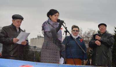 Руководитель фракции КПРФ в Барнаульской городской Думе Елена Хрусталева поздравила собравшихся с праздником, отметив, что каждое первое мая трудящиеся всех стран выходят на улицы, чтобы продемонстрировать миру капитала свою силу и единство в борьбе за лучший мир и справедливость, чтобы отстоять завоеванные в суровых боях жизненные права. Пусть наша борьба трудна и возможно обречена на временные неудачи, но она необходима. Маяком в этой борьбе является общество, построенное в СССР, где царили социальная справедливость, равенство, интернационализм, истинная демократия.