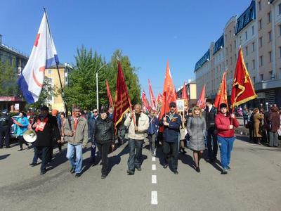 После возложения коммунисты прошли праздничной колонной с красными знаменами, портретами маршалов Победы и Иосифа Сталина по проспекту Социалистическому до площади Советов. По ходу шествия коммунисты скандировали: «Слава великому Сталину!», «Слава Советской Армии!», «Слава Великой Победе!», «Наша партия – КПРФ!» и «Наша Родина – СССР!».
