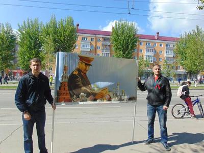 Также в этот день коммунисты Железнодорожного райкома с 10-00 до 13-00 провели традиционный пикет на бульваре Защитников Сталинграда возле танка Т- 34, входящего в комплекс Мемориала Славы. У подножья памятника была установлена растяжка с портретом Иосифа Виссарионовича Сталина и лозунгом: «Сталин, Победа – да! «Десталинизация» - нет!». Два молодых коммуниста, одетые в военную форму, в течение всего мероприятия стояли на танке с копиями Знамени Победы.