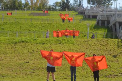 Флешмоб, организованный комсомольцами на ступенях Нагорного парка, был призван обратить внимание на выявленное нарушение, чтобы власти не могли его замолчать и приняли необходимые решения в отношении подрядчика. Ребята, держа в руках красные комсомольские флаги, выстроились по склону, где проложены стоки ливневой канализации, стоимость которых оказалась в разы меньше, чем заявленная в ходе аукциона.
